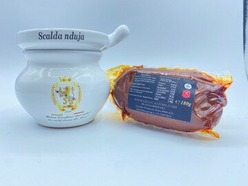 - scalda Nduja artigianale in terracotta De Luca. un oggetto caratteristico della Calabria che serve per servire la Nduja. viene inserita una candela nella parte inferiore, e sul piattino della parte superiore la Nduja che verrà riscaldata dal calore della candela, e sarà pronta per essere servita cremosa e profumata per un aperitivo antipasto o semplice su delle bruschette